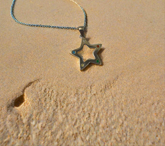 Cuenta una antigua leyenda que, cuando el mundo aún era joven y estaba lleno de misterios, en el cielo brillaban incontables estrellas, cada una con su propia luz. Entre todas ellas, una destacaba por su resplandor especial. Su nombre era Nara, y no era solo un punto de luz en la inmensidad, sino un símbolo de unión. Con sus cinco puntas de colores irradiaba un calor que llegaba al corazón de quienes la contemplaban.